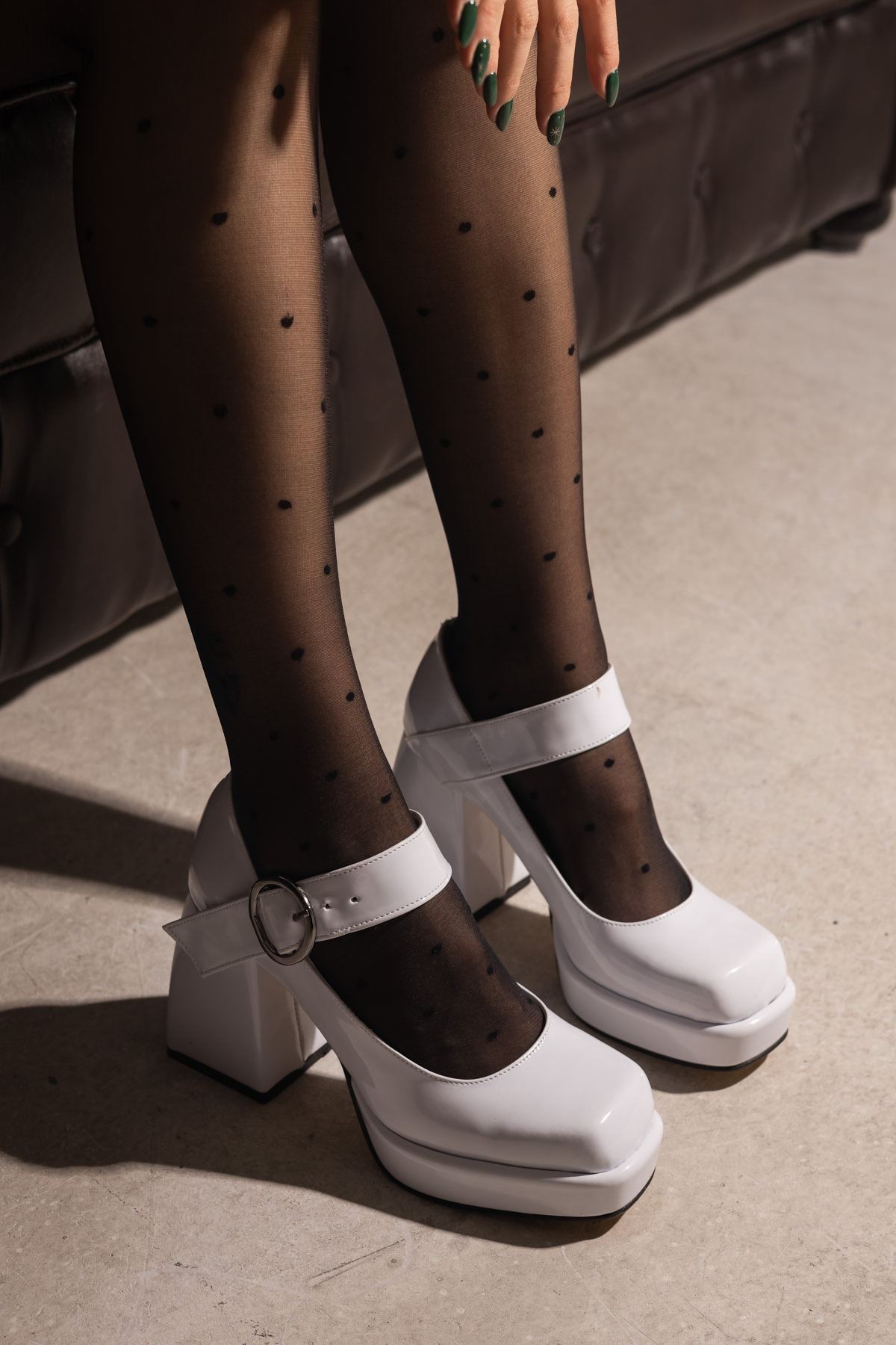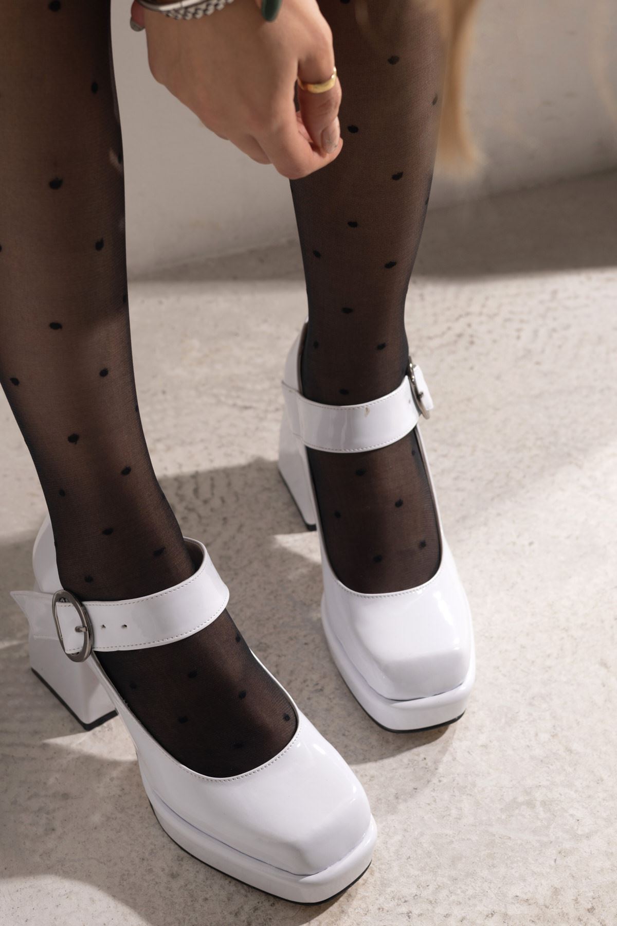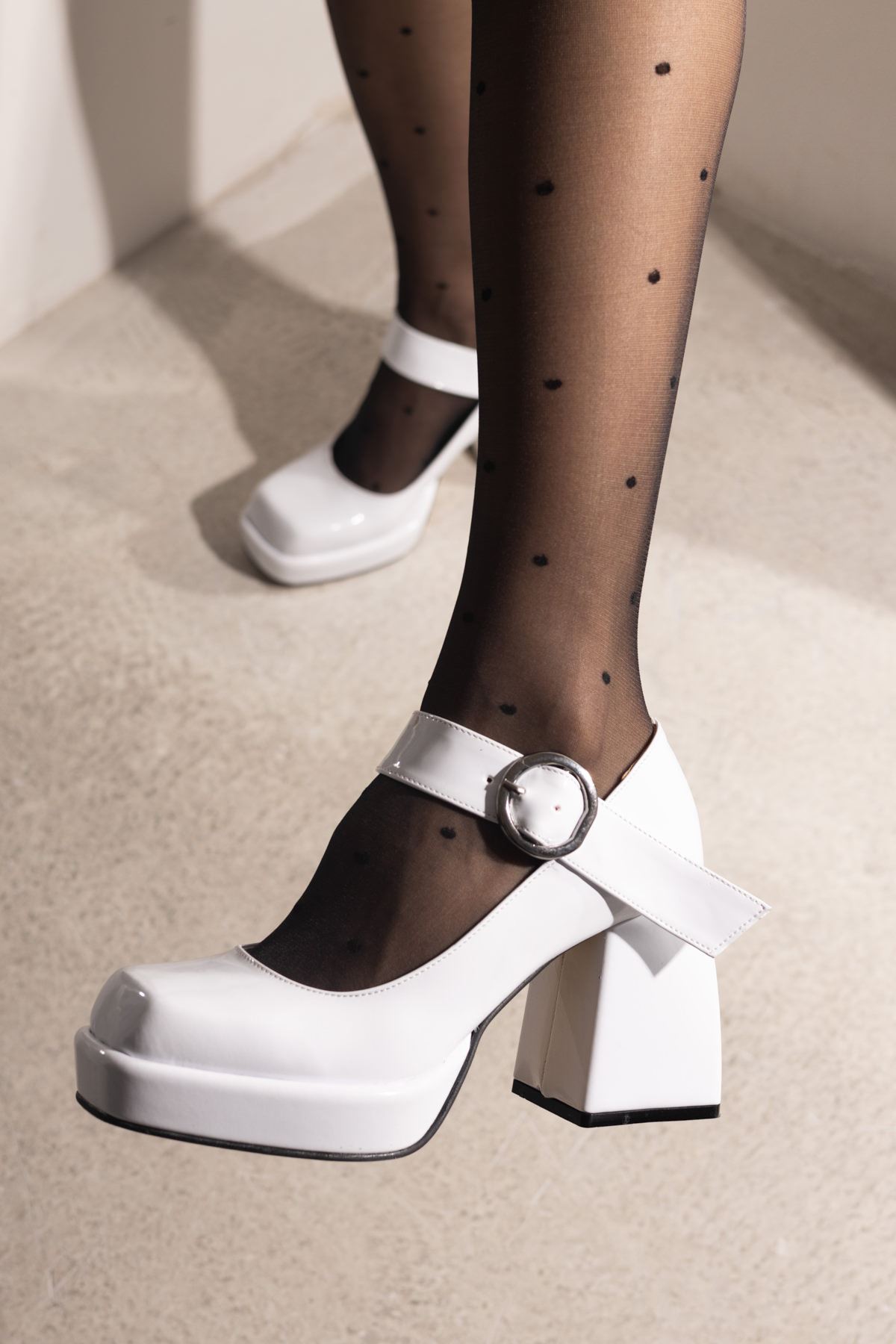 Kadın Rugan Romeo Platformlu Topuklu Tokalı Ayakkabı Beyaz